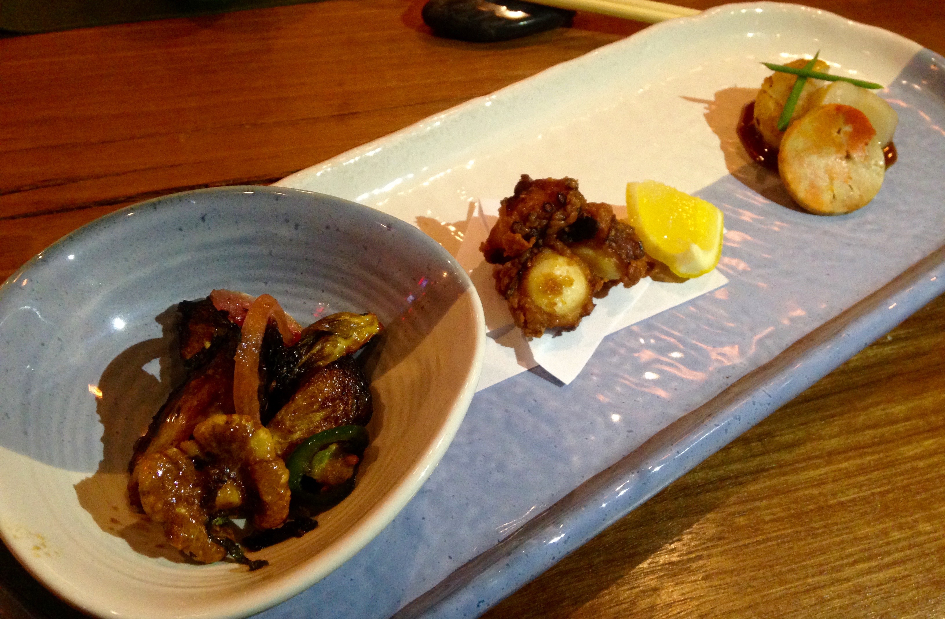 The crispy Brussels sprouts are the best-selling dish at Doraku. We can see why. It’s a blogger favorite too. So is the chicken-fried octopus in the center.