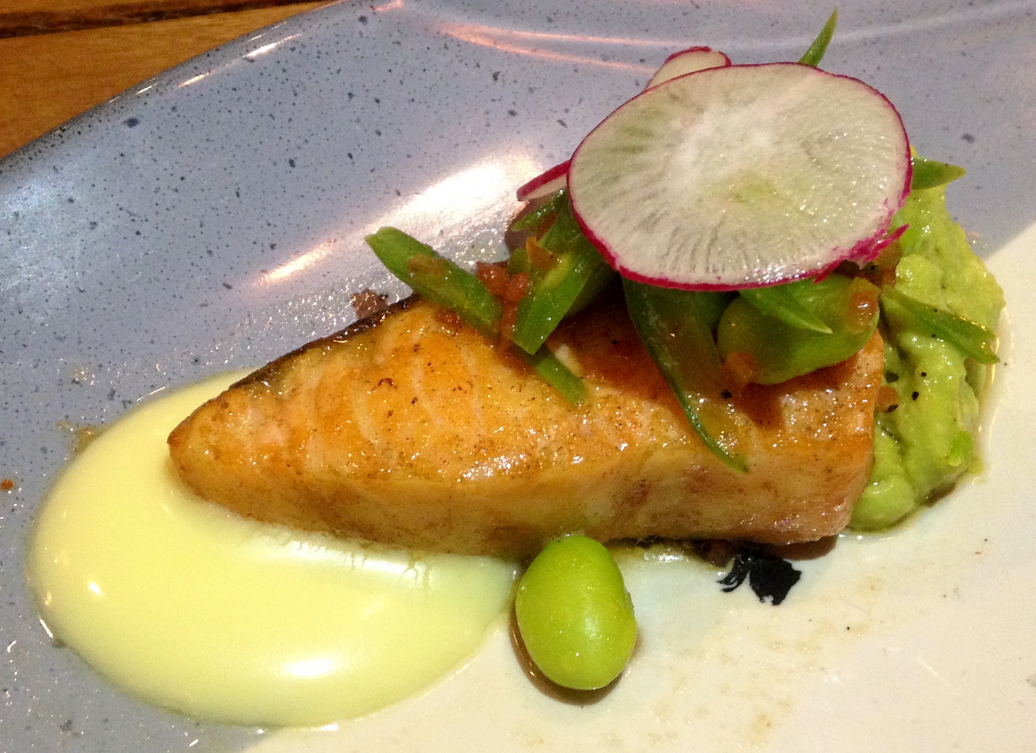 The hits keep coming. Next out is a roasted salmon in truffle oil.