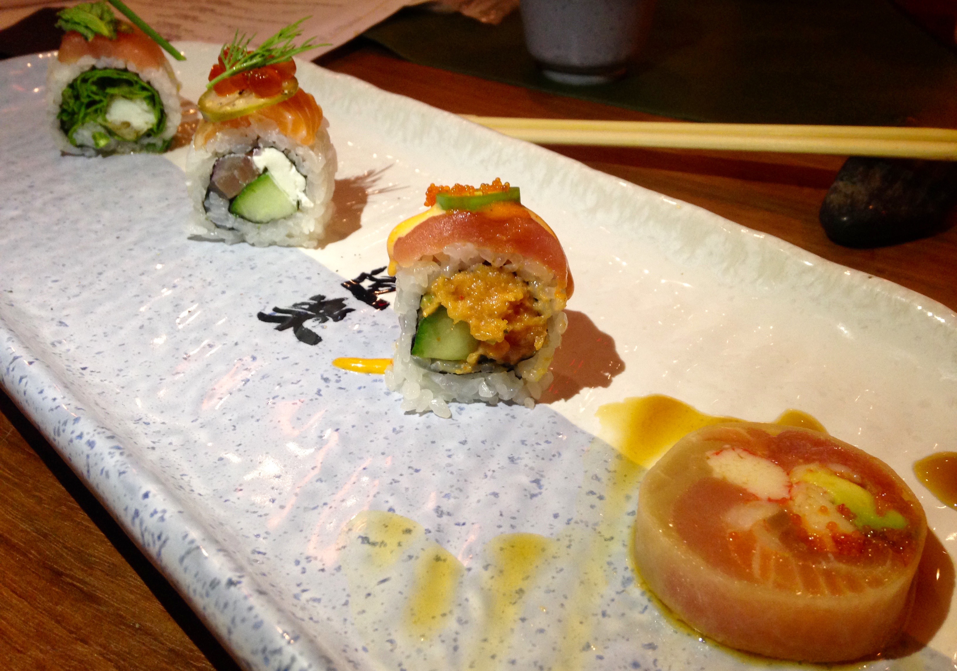 Sushi dominates the next plate. It should–we are in a sushi place.