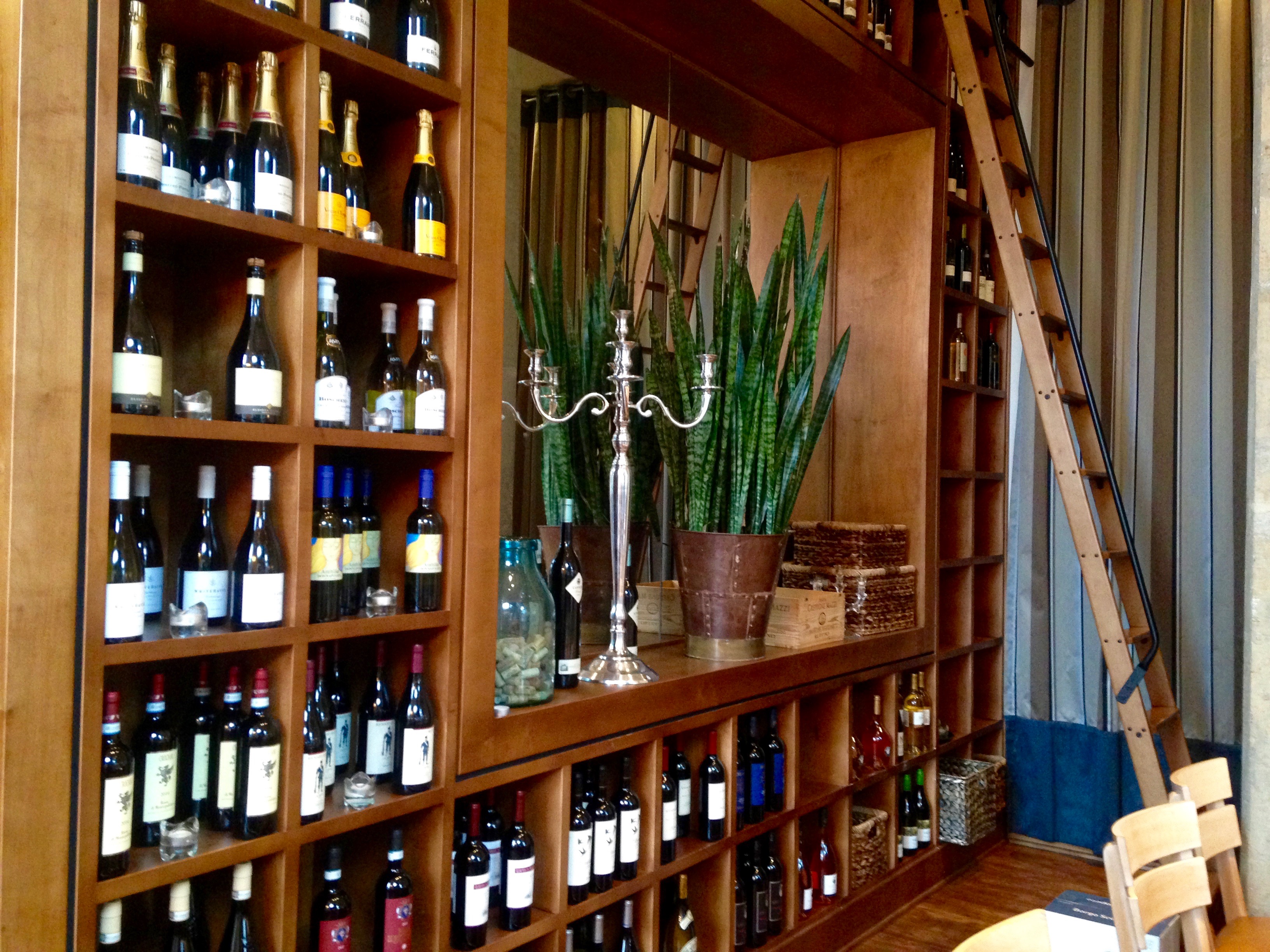 There’s a lot of chrome, glass, concrete, and wood inside. What we really liked was the “Wall of Wine”.