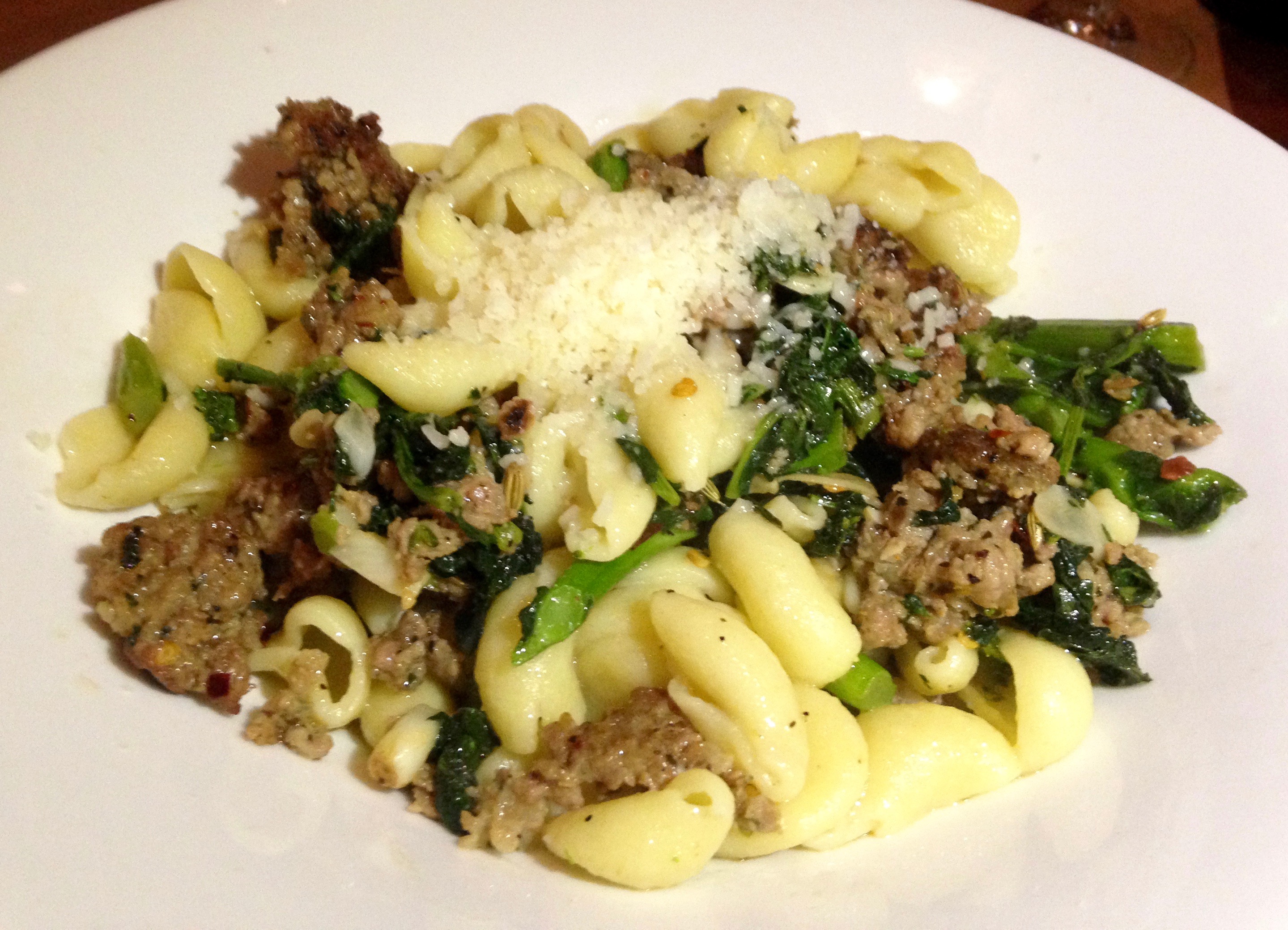 Did you know that orecchiette means “little ears” in Italian. You learn the most fascinating things at dinners like this. The dish is full of that house-made ground sausage, making this a palate-pleasing plate.