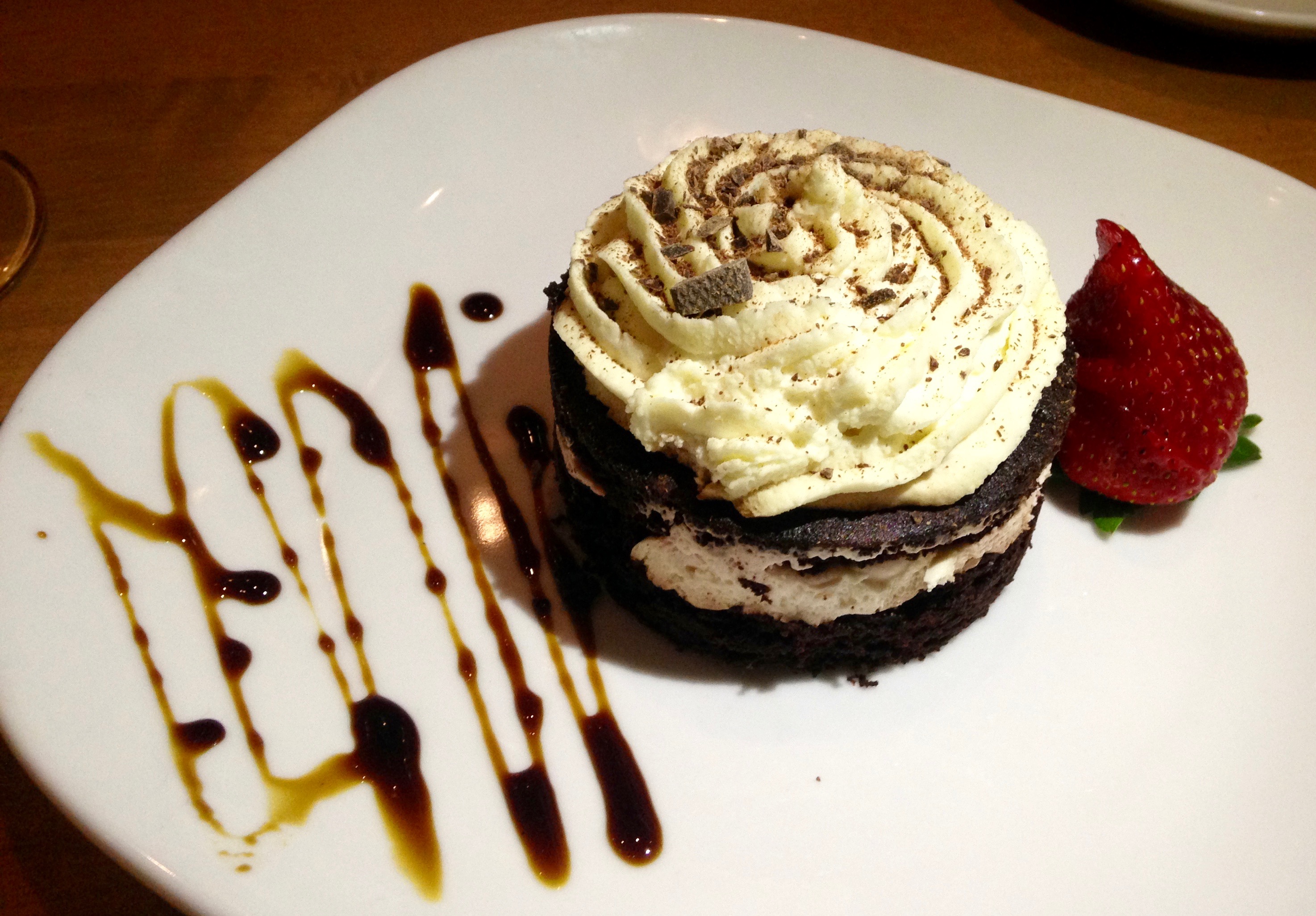 After all of that spice, it’s time to cool things down. The chocolate cake tiramisu substitutes chocolate cake for the traditional ladyfingers.