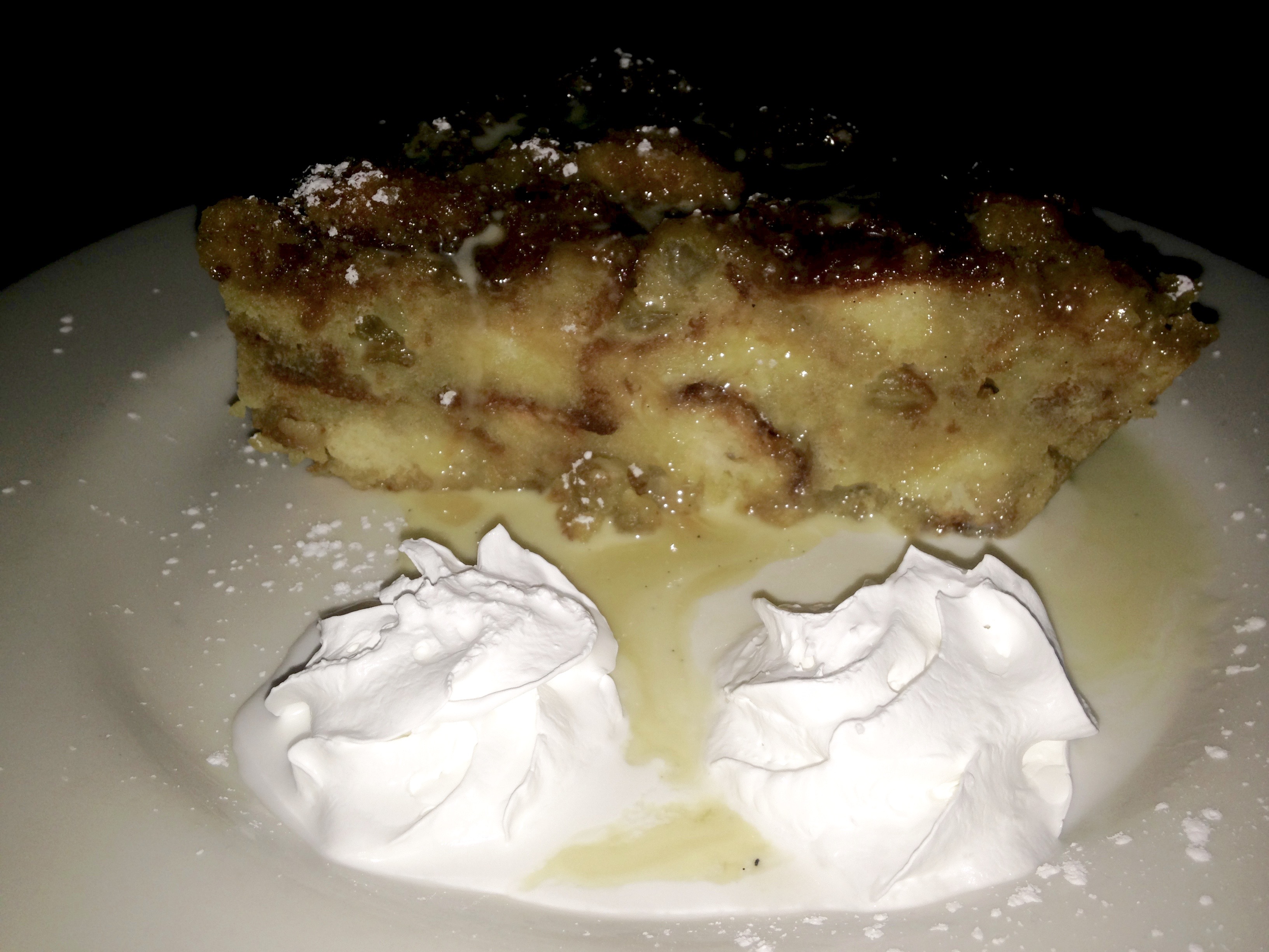I’m glad I do. It’s got rum in it and it’s covered in a creme anglaise. Some of this comes home for dessert the next day. It’s a sweet way to end the meal with my sweetie.