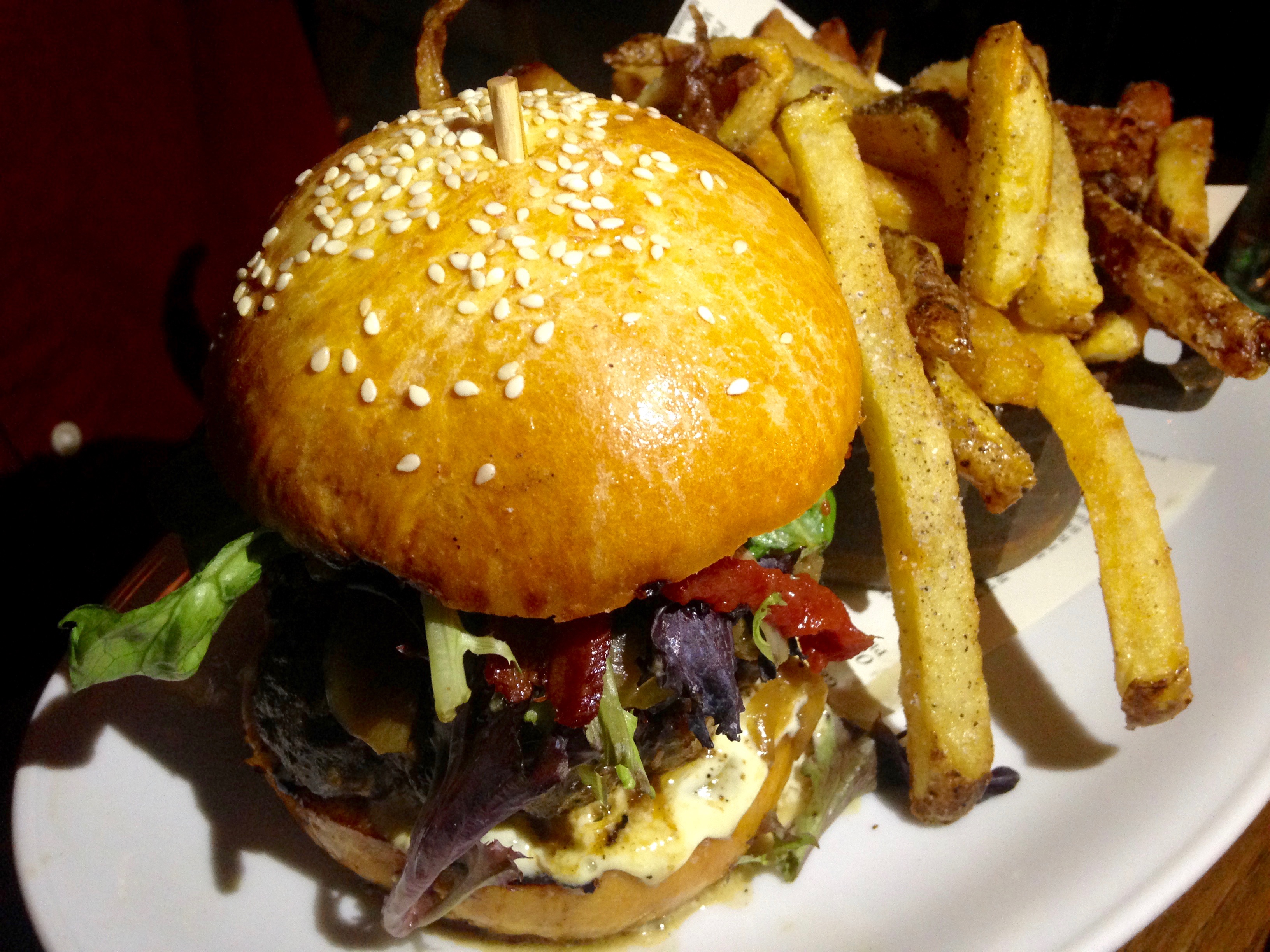 The menu has a lot of meat, because that’s what you cook over fire. What can we get from the monster hearth? “The King” is a 2.2 pound hunk of prime ribeye ($87), which you can share with a couple of friends. We didn’t see one come out, but the whole Springer Mountain chicken looks gorgeous. The birthday boy goes for “The Duke”, the house burger.