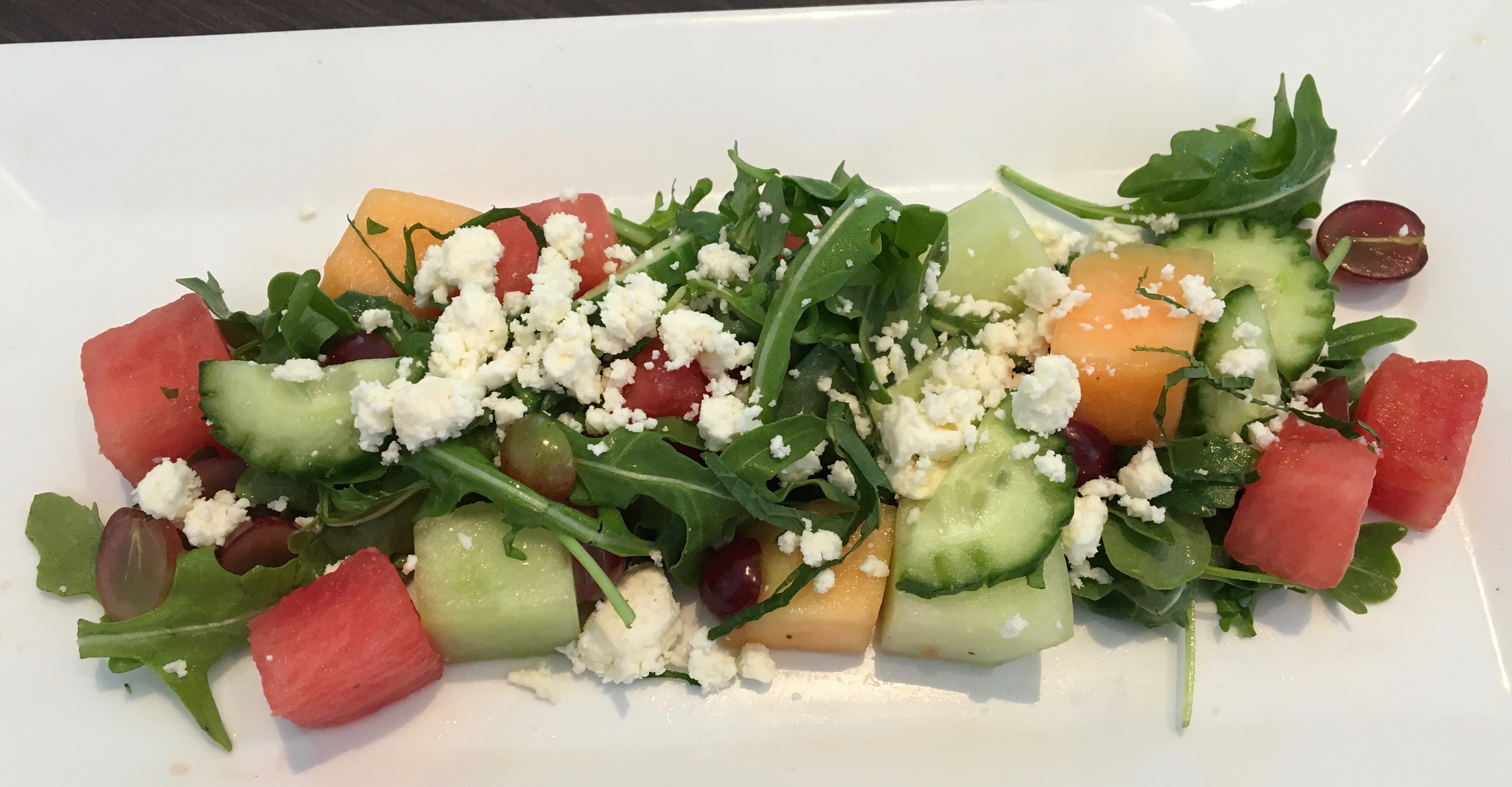 Before we dive into the dinner menu, a Melon and Grape Salad comes out.