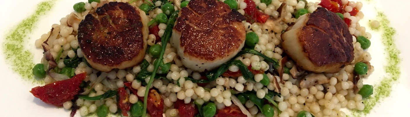 The pan-seared bi-valves sit atop a bed of couscous, peas, and mushrooms. If all scallops were this good, I would eat more of them.