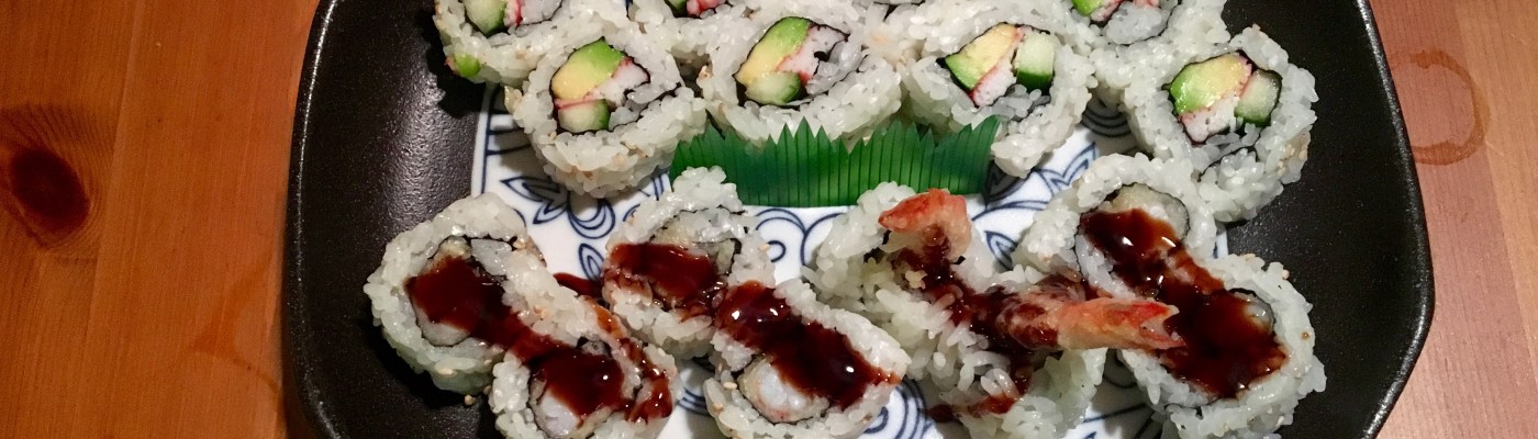 Above we have the California roll and the shrimp tempura roll. Everything we eat tonight is fresh and plentiful. Here’s some more “sushi porn”: