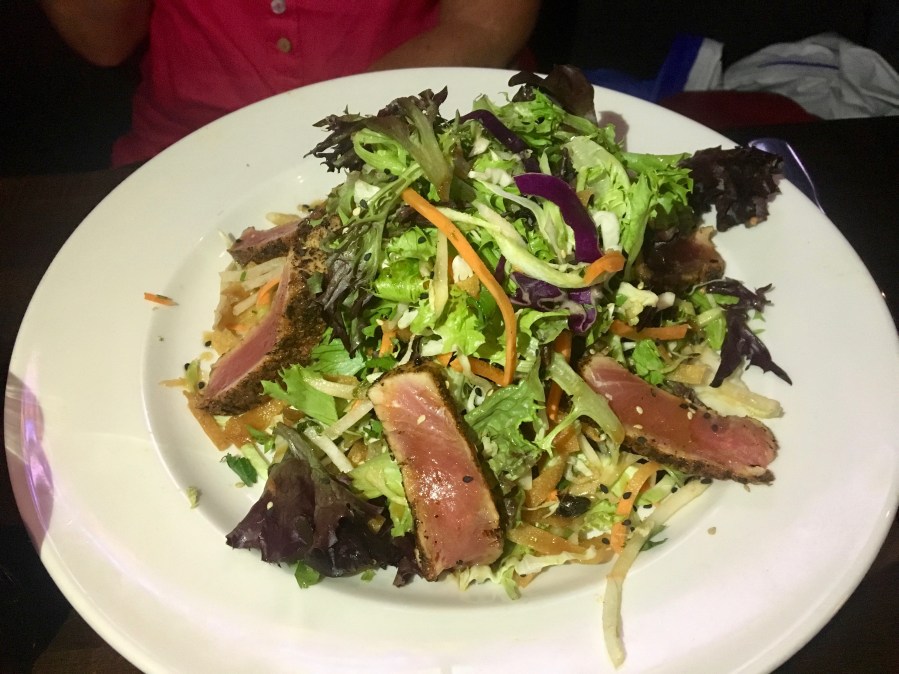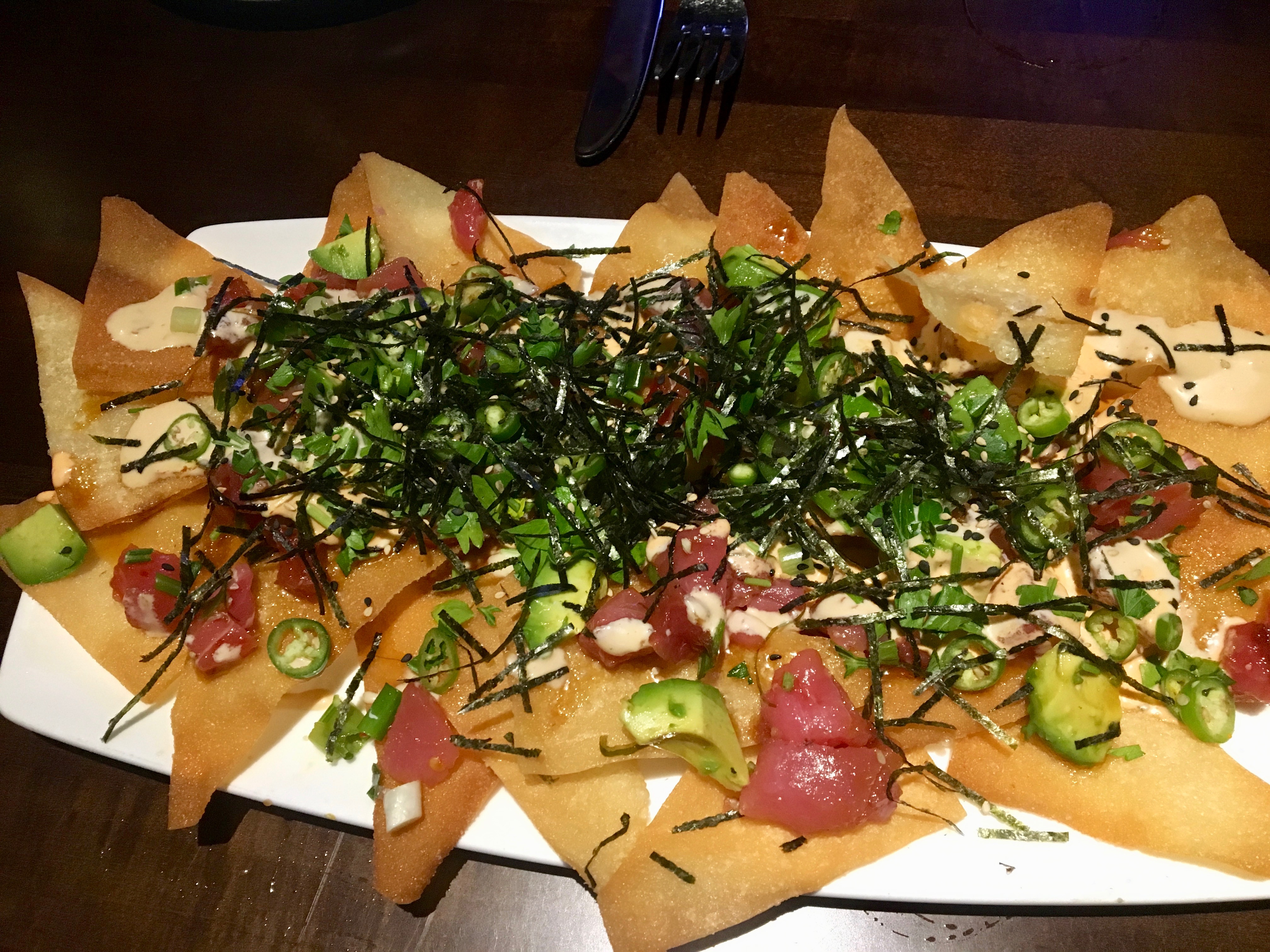 The poke nachos are the best thing I taste tonight. They put ahi tuna on a bed of crispy wantons and cover it with a nice Asian sauce. Throw in some avocado and sesame seeds and you have a really nice starter.
