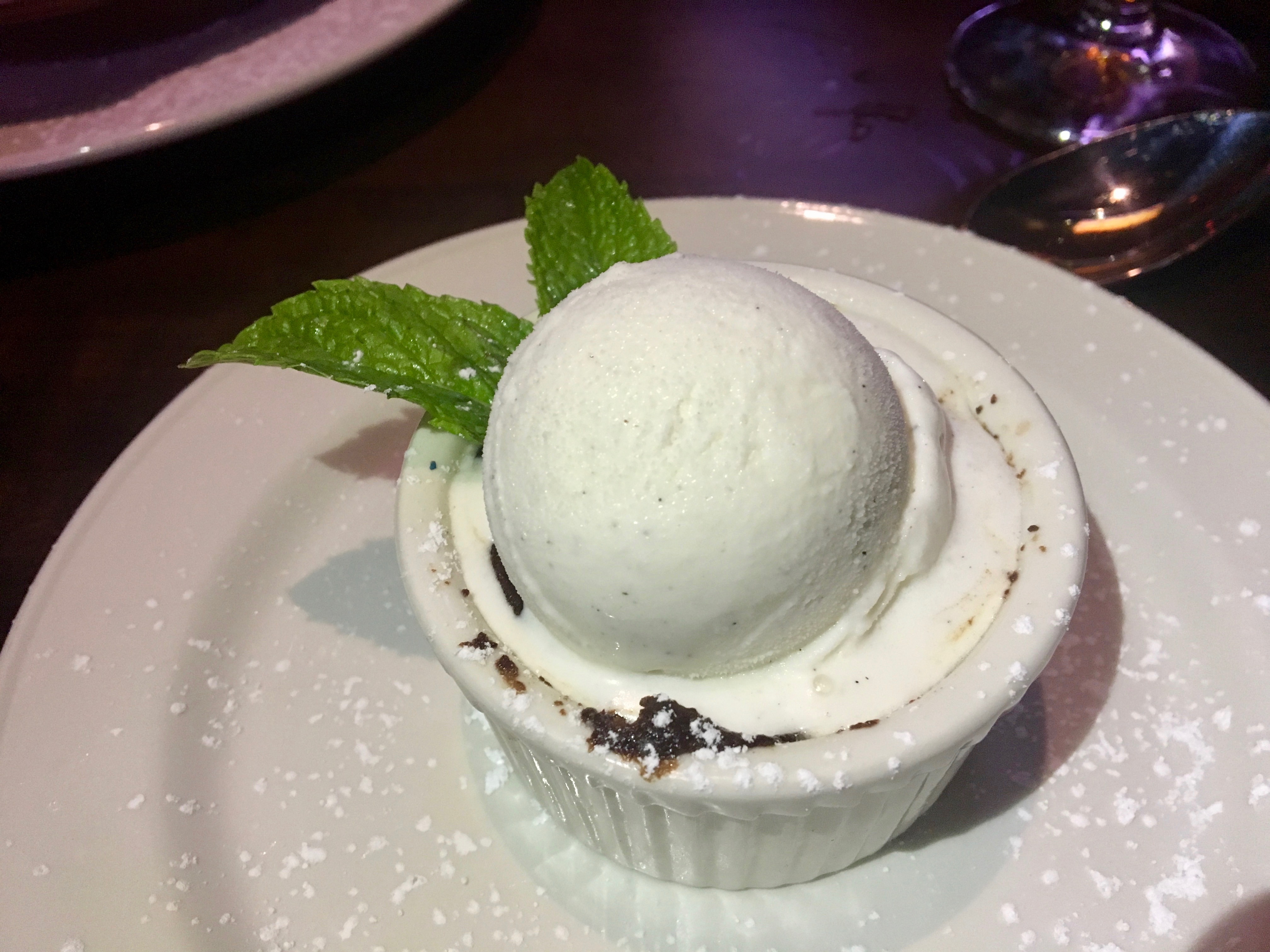 They top this one with mint chocolate chip ice cream. Good stuff. So is the mini chocolate souffle cake.