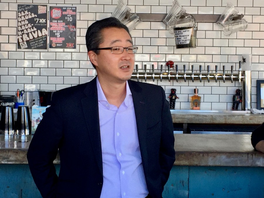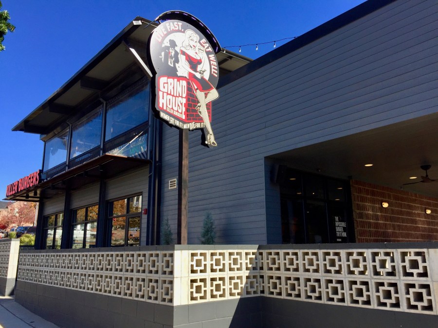 We are at Grindhouse Killer Burgers in Decatur. Well, half of us is here. The cute one plays mah jong on Tuesdays, so I am on my own. Some bloggers and newspaper writers have been invited to try the burgers and learn about how they are made. Also present is Impossible Foods COO David Lee, who has jetted in from the west coast to answer our questions.