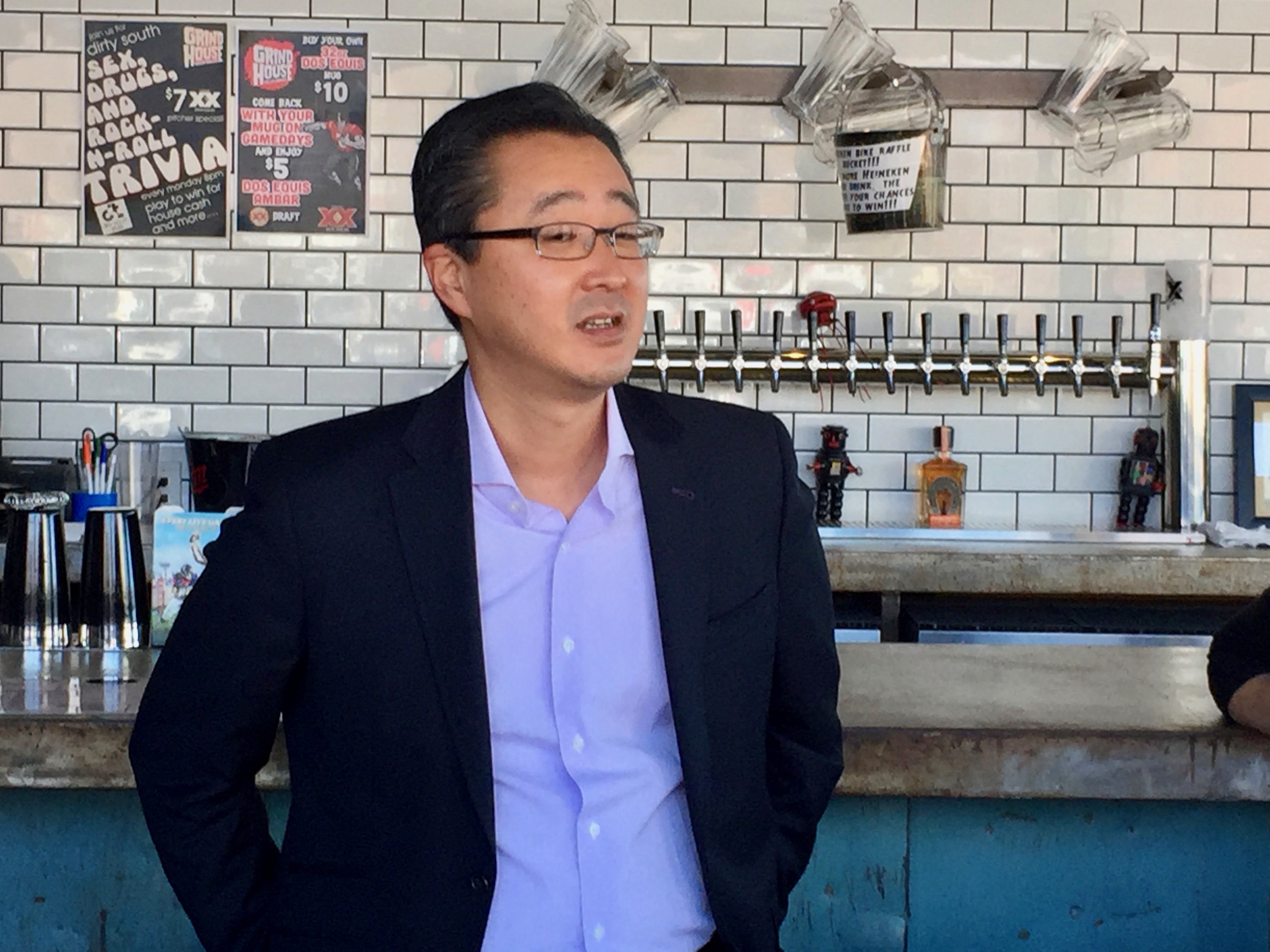 We are at Grindhouse Killer Burgers in Decatur. Well, half of us is here. The cute one plays mah jong on Tuesdays, so I am on my own. Some bloggers and newspaper writers have been invited to try the burgers and learn about how they are made. Also present is Impossible Foods COO David Lee, who has jetted in from the west coast to answer our questions.