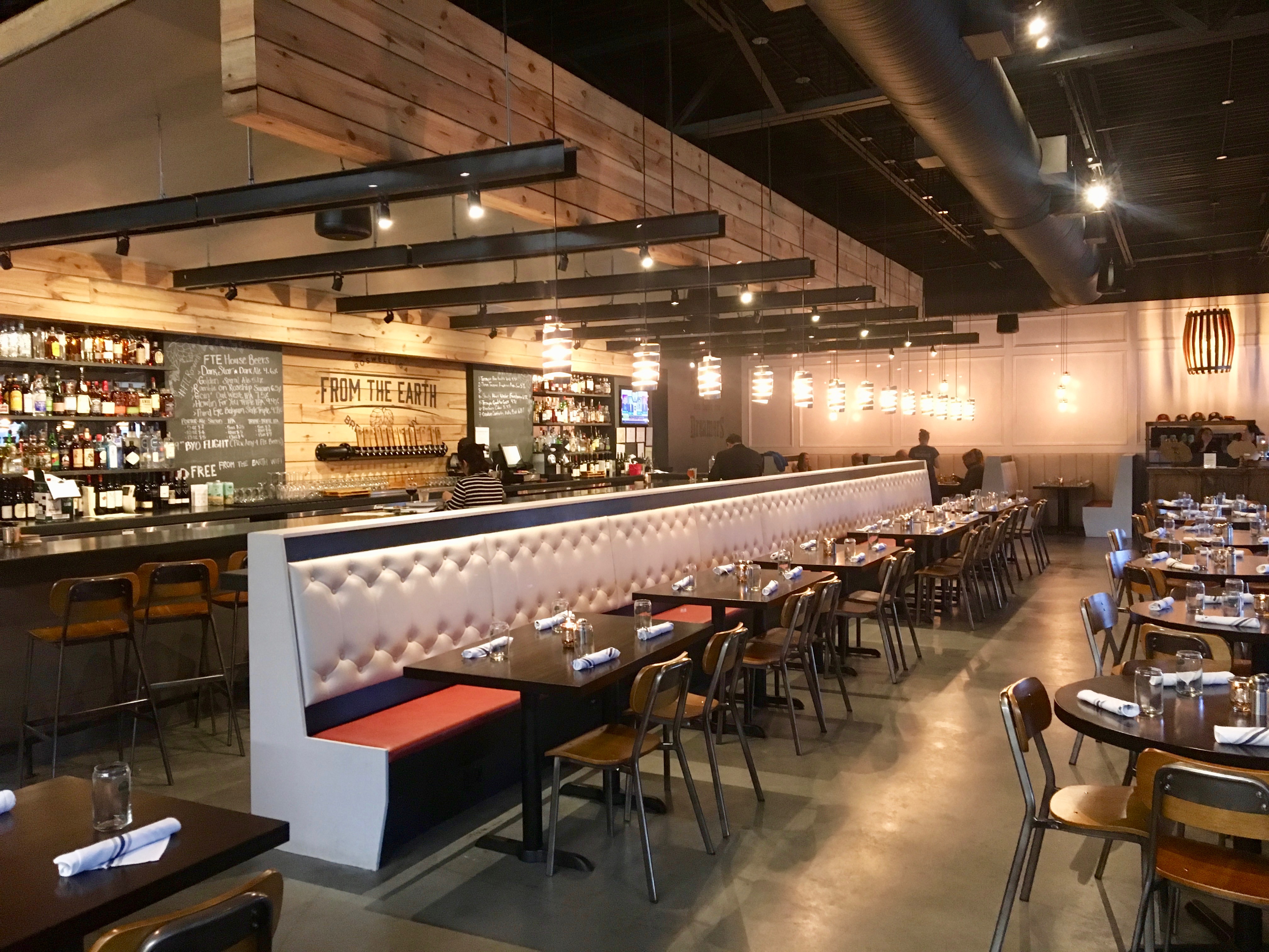 We are on the endless shopping center known as Holcomb Bridge Road. Does the brick and mortar ever end? From the Earth is visually pleasing, with lots of wood and metal in the decor.