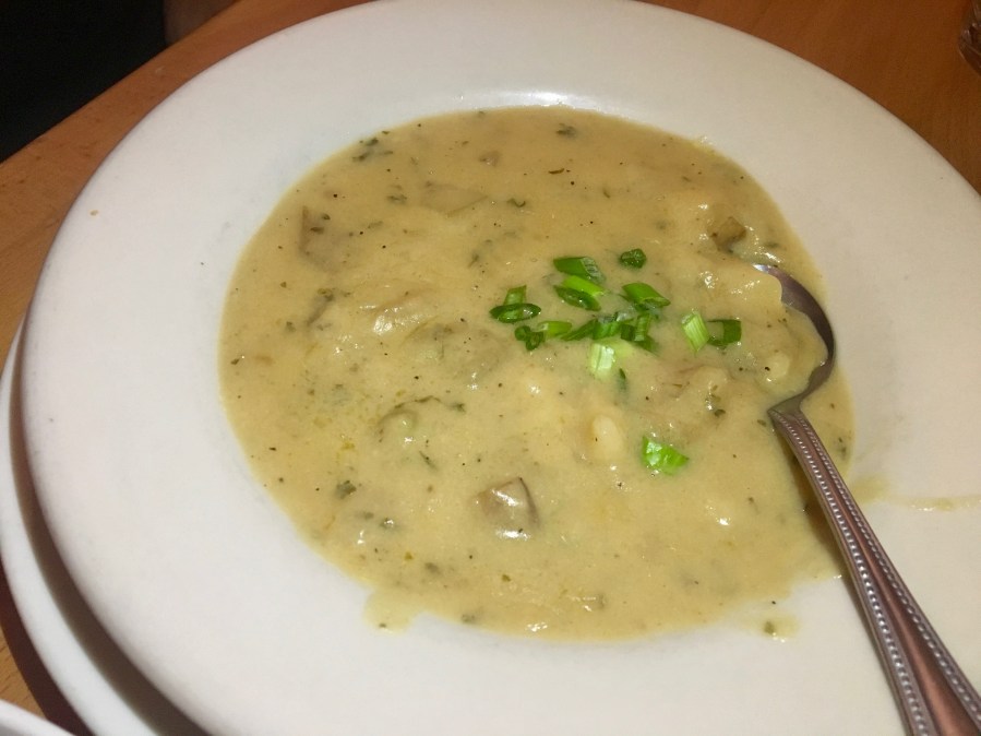 Bill goes soup and salad with potato soup…