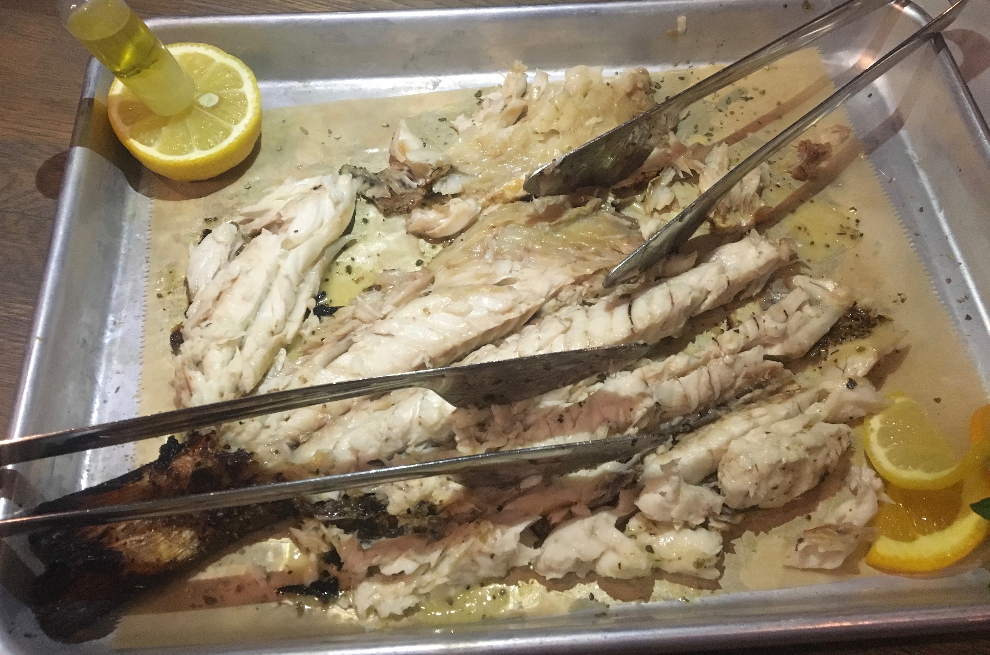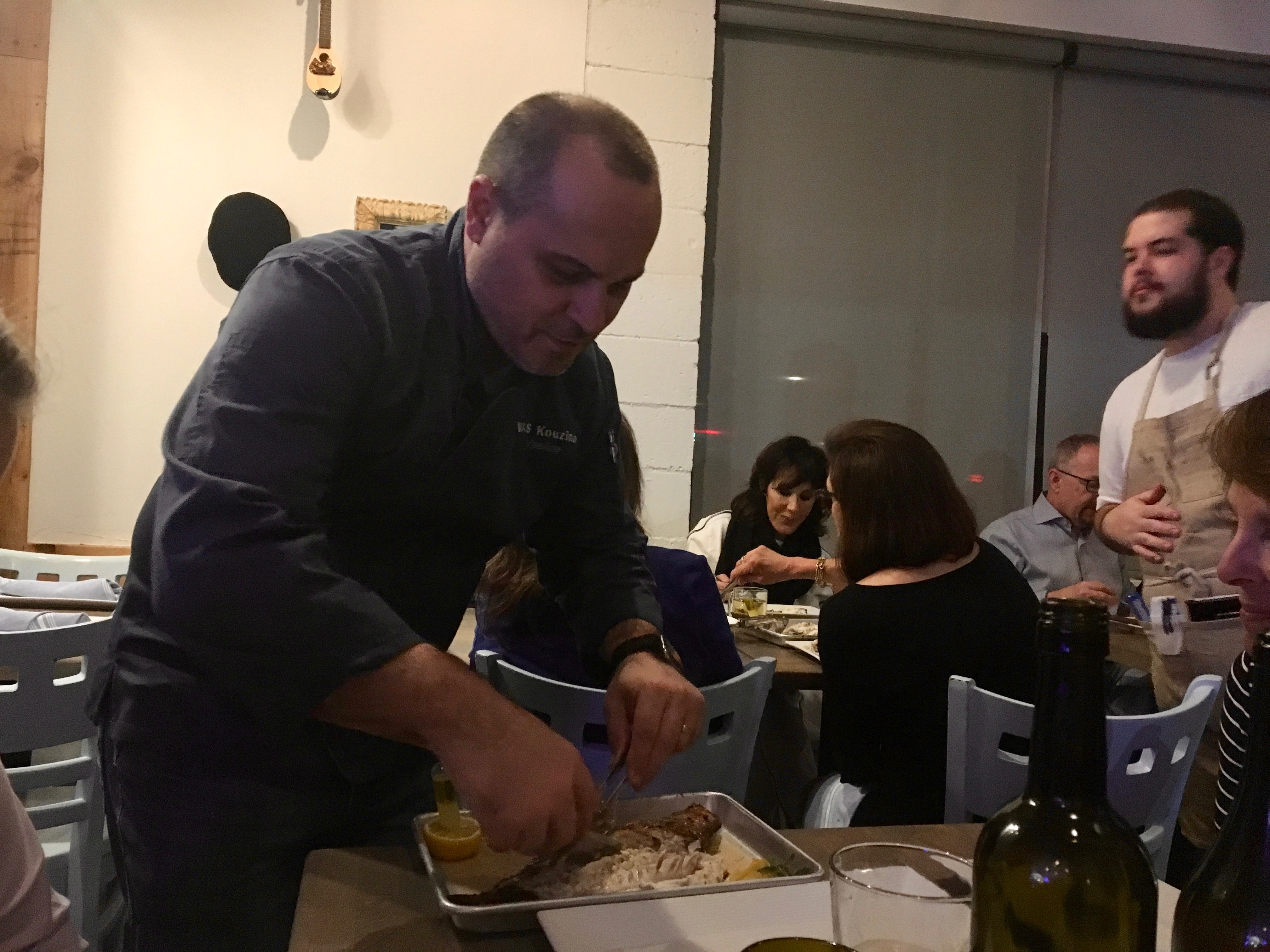 That’s not just any fish filet-er. That’s Vas owner and chef Vasilios Liakakos, who pops out of the kitchen to pop the bones out of our fish.