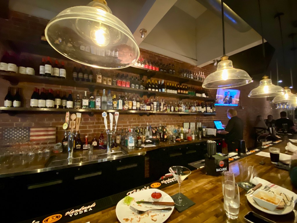 Anyway, there was “no room at the inn” without a reservation. We spotted a couple of seats at the bar and they said we could sit there.
