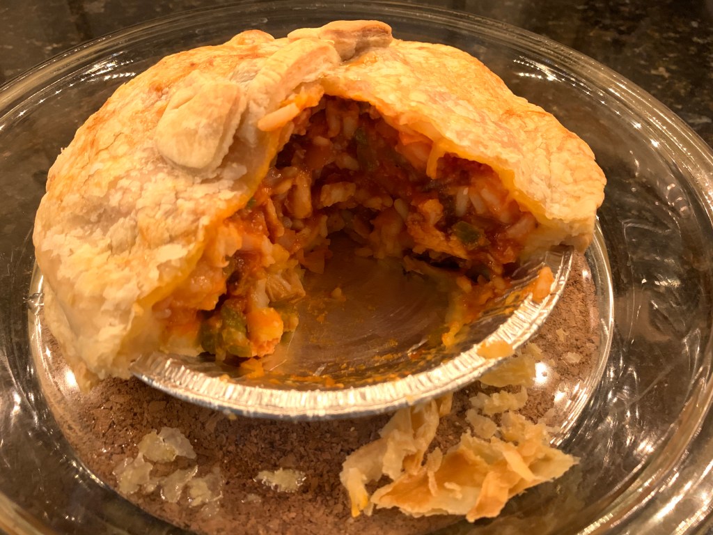 Good correspondents that we are, we have tried the vegetarian (excellent for veggie lovers) and turkey (Thanksgiving in a pie). Pop them in your oven and ninety minutes later, voila!
