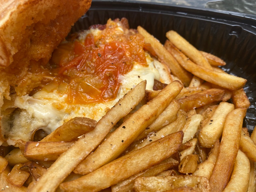 These stayed crispy and added a sweet touch to the heavy food we ordered. Ordering is done on the phone, where they take your credit card number. You can pull up to the restaurant, call them, and they will bring your food out and stick it in the back seat of your car. It’s touchless, fast, and easy. And the food we had was delicious…the first time. We liked it so much that we ordered more Cubans for the second time we took it home. These weren’t as good as the meat was somewhat dry. Hopefully, we just hit them on a bad night.