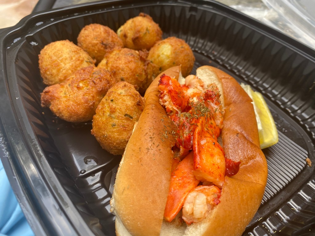 You can get them as a side order, or you can opt for the lobster roll, which comes with them on the side. Check out those big chunks of lobster on that bun.