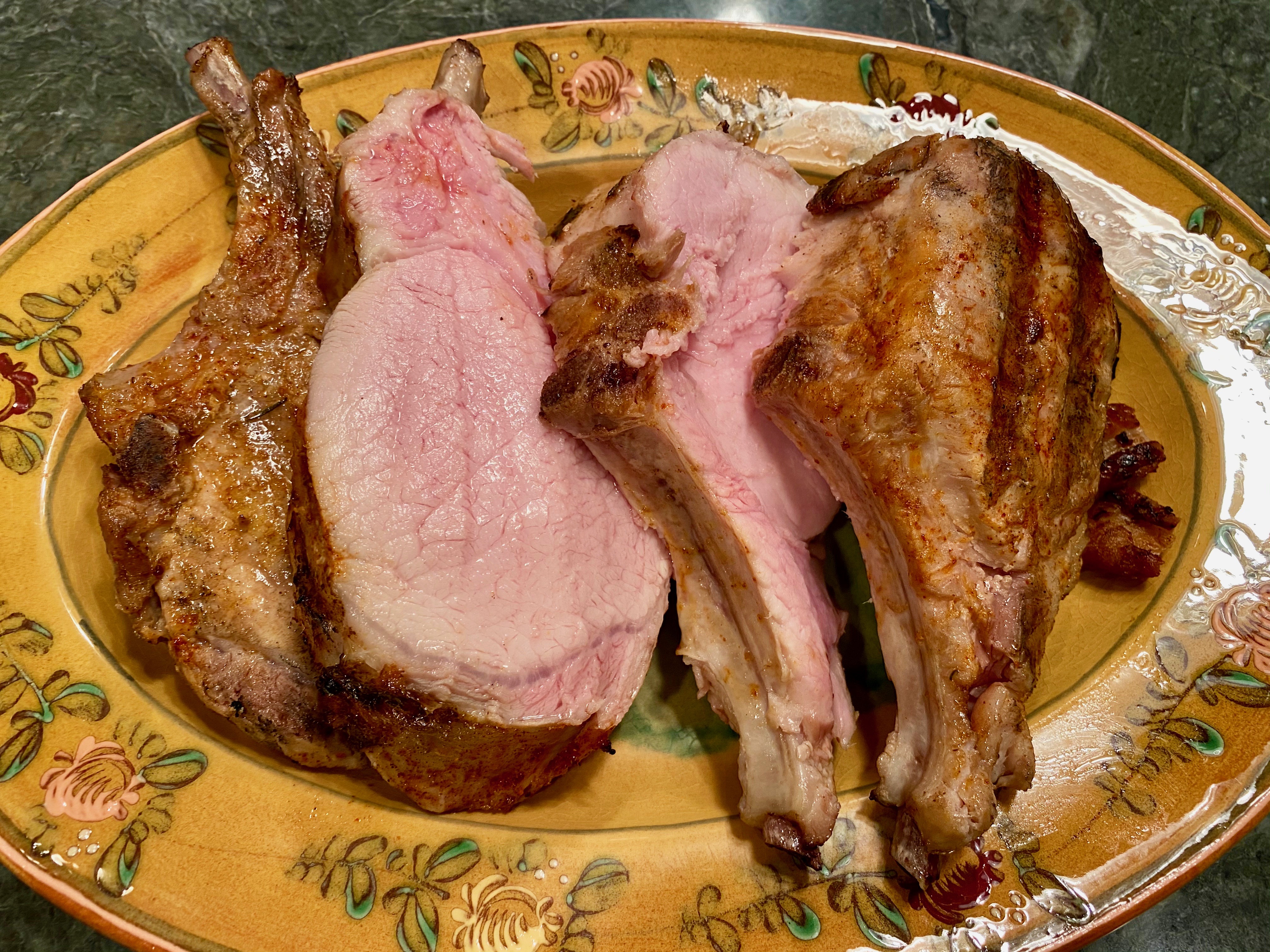 If you ever see the pork rib roast at Costco, buy it! We cut it in half and freeze half of it to cook later. I don’t usually boast about my cooking, but this was as good as anything you can get in a restaurant.