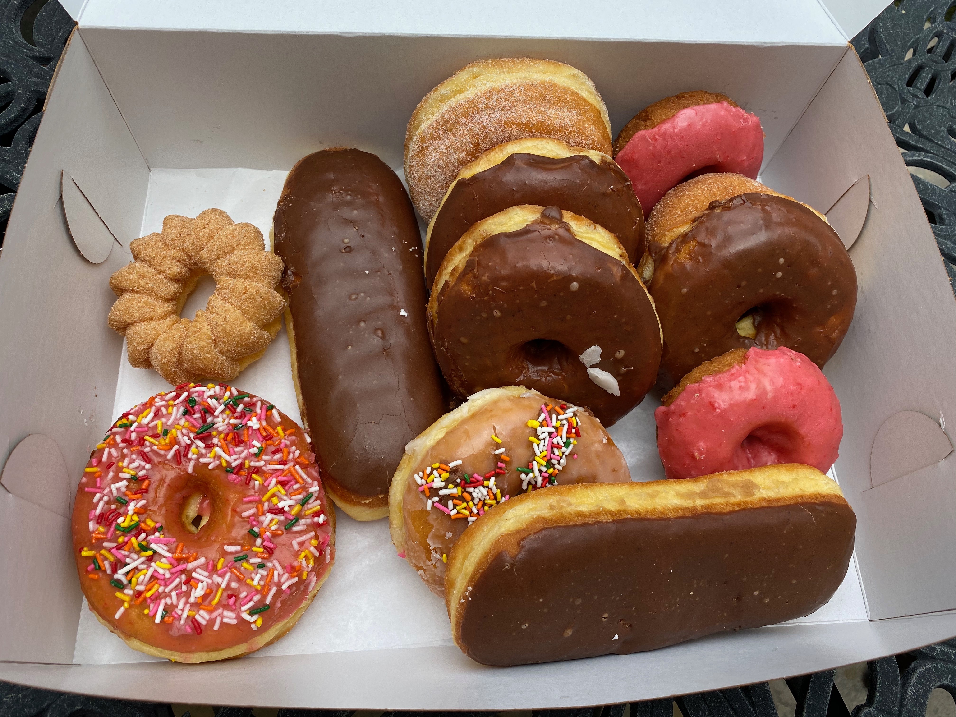Wait, more donuts? Question: Why don’t we weigh 400 pounds? Answer: Over 6000 miles on our tandem bicycle this year. These came from Revolution Donuts in Kirkwood. We had these with friends on a bike ride.